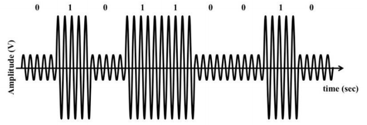 and larger amplitude for a 1-bit. We have seen what an ASK signal looks like in a previous chapter, repeated below.